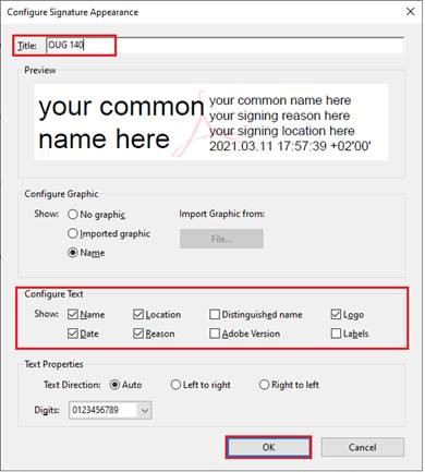 • from the Configure Text section you can configure what appears on the right side of the signature: